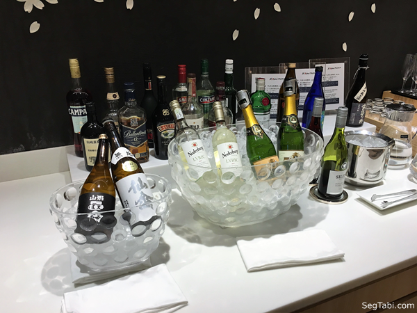 このラウンジのお酒です。日本酒、焼酎など、日本のお酒も並んでいますよ。ワイン飲んでなかったら、日本酒も飲みたかったな~