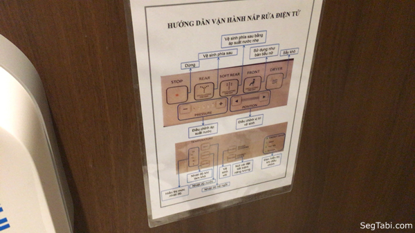 写真の通りホーチミン高島屋のトイレにウォシュレットがありました。ウォシュレットは英語の操作パネルでしたが、個室の壁にベトナム語の操作案内が貼られていました。