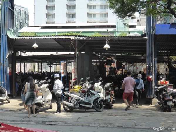ベトナムはやはりバイクの国です。通勤、通学で乗ってきたバイクは上の写真のようなビルの前の青空バイク駐車場や下の写真のような専用バイク駐車場に駐車することになります。多くのビルの前にはバイク駐車場があり、そこには警備員がいて、ビルの警備員も兼ねているのかもしれませんが、駐車されるバイクを監視&管理しています。ベトナムではこのような仕事がまだまだ残っているんですよね。