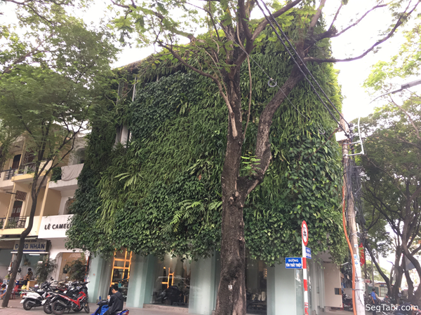 そうかといえば、こんな感じのものすごい壁面緑化のビルがあったり、いろいろと楽しませてくれます。これだけ繁っちゃうんですよね(笑)