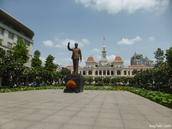 ホーチミン師の銅像とホーチミン人民委員会の庁舎です。このあたりから歩いて散策スタートです!…と思ったら背後から声がします。