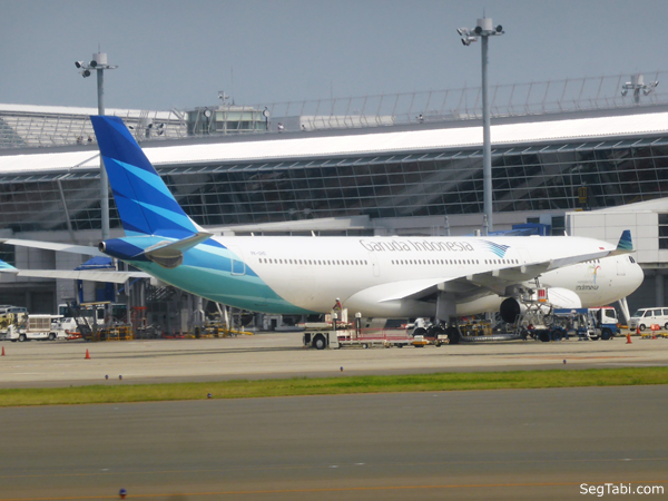 この直後、手前のスポットに飛行機が入ってきてしまったので、座席に座ったときにはこの飛行機は見えなくなってました。立ち止まって写真撮って良かった。