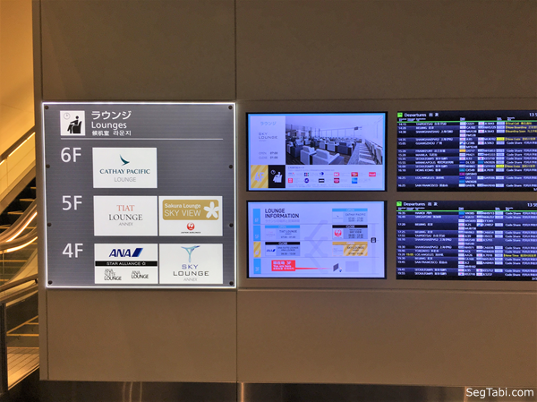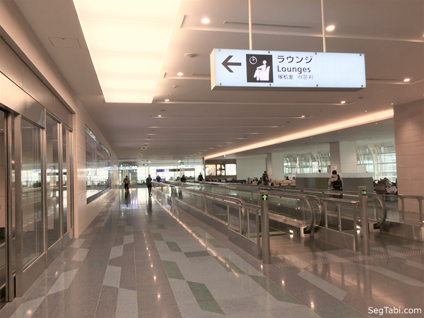 自動ドアを入るとラウンジの案内があります。日中は、この場所のANA、JALのラウンジは閉まっているようで人気(ひとけ)がなかったです。