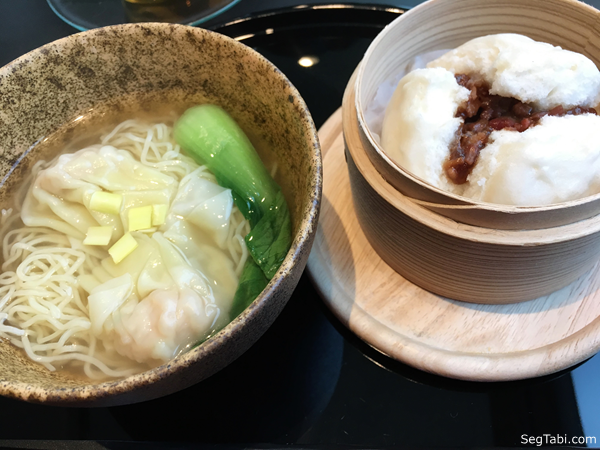 少ししてから、蝦雲呑麺とチャーシューまん。雲呑麺は香港のラウンジのほうが好きかな~?