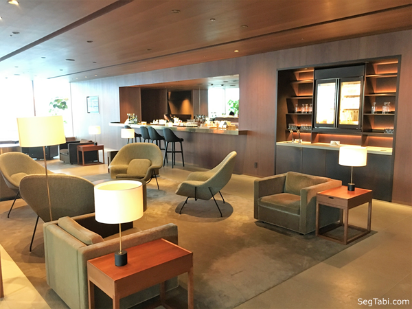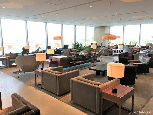 自動化ゲートでの出国を済ませて、いよいよ今回の旅の目的のキャセイパシフィック航空の「キャセイパシフィック・ラウンジ」へ。このラウンジは羽田空港国際線ターミナル6階にあり、羽田の国際線ではいちばん上のフロアにあるラウンジで、飲食のサービスはホテルオークラが行っています。